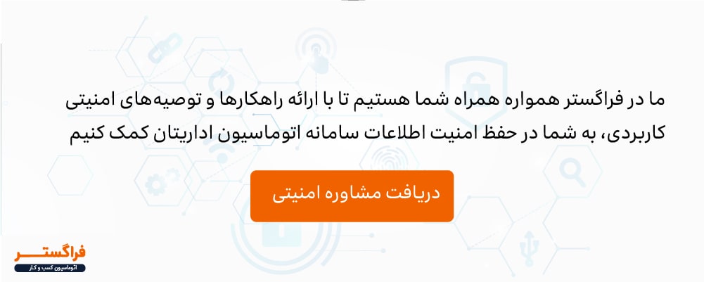 در دنیای دیجیتال امروز، امنیت اطلاعات به یک ضرورت تبدیل شده است و سازمان‌ها باید برای محافظت از داده‌های خود سرمایه‌گذاری کنند. اتوماسیون اداری فراگستر با ارائه راهکارهای امنیتی جامع و قابل اعتماد، به سازمان‌ها کمک می‌کند تا به این هدف دست یابند. با این حال، امنیت اطلاعات یک فرآیند مداوم و مسیر است نه یک مقصد! و نیازمند توجه و تلاش مستمر همه افراد در سازمان است. با اتخاذ رویکرد جامع امنیتی و استفاده از ابزارها و زیرساخت‌ها و فناوری‌های امنیتی مناسب، می‌توان از اطلاعات سازمان در برابر تهدیدات سایبری محافظت کرد و به موفقیت بلندمدت کسب‌وکار کمک کرد. مثل همیشه فراگستر همراه شماست تا به سازمان‌های بهره بردار از نرم‌افزار اتوماسیون اداری فراگستر مشاوره‌ها و راهکارهای امنیتی لازم را ارائه کند.