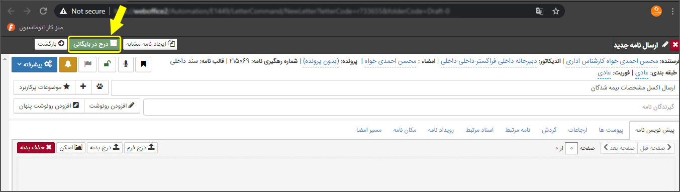 در اتوماسیون هم این امکان ایجاد شده تا برای قالب نامههای از نوع سند، دیگر نیاز به تعیین گیرنده نباشد و بدون گیرنده سند قابل ثبت باشد.