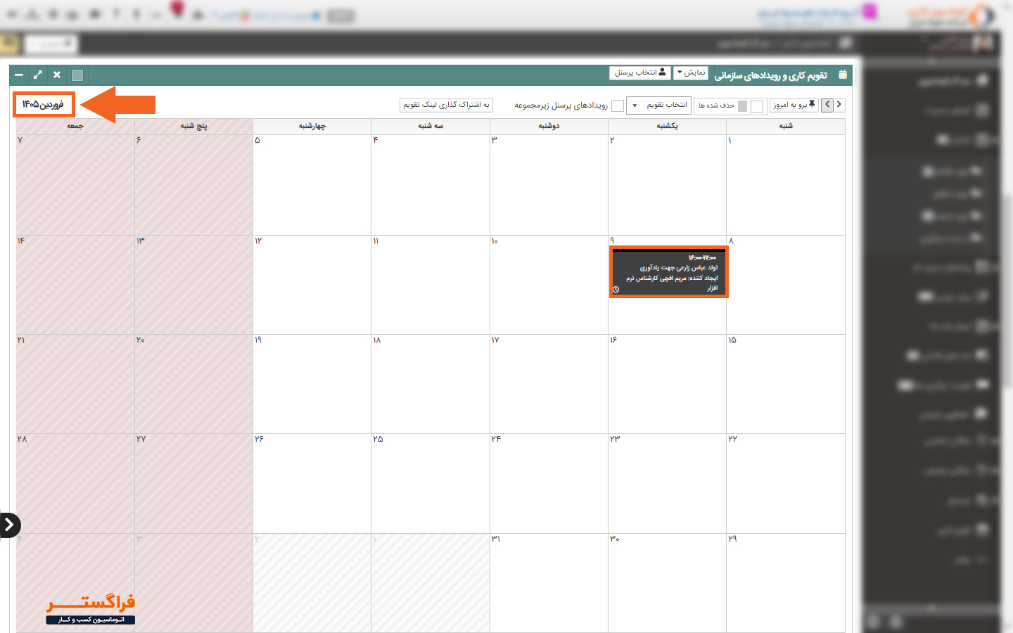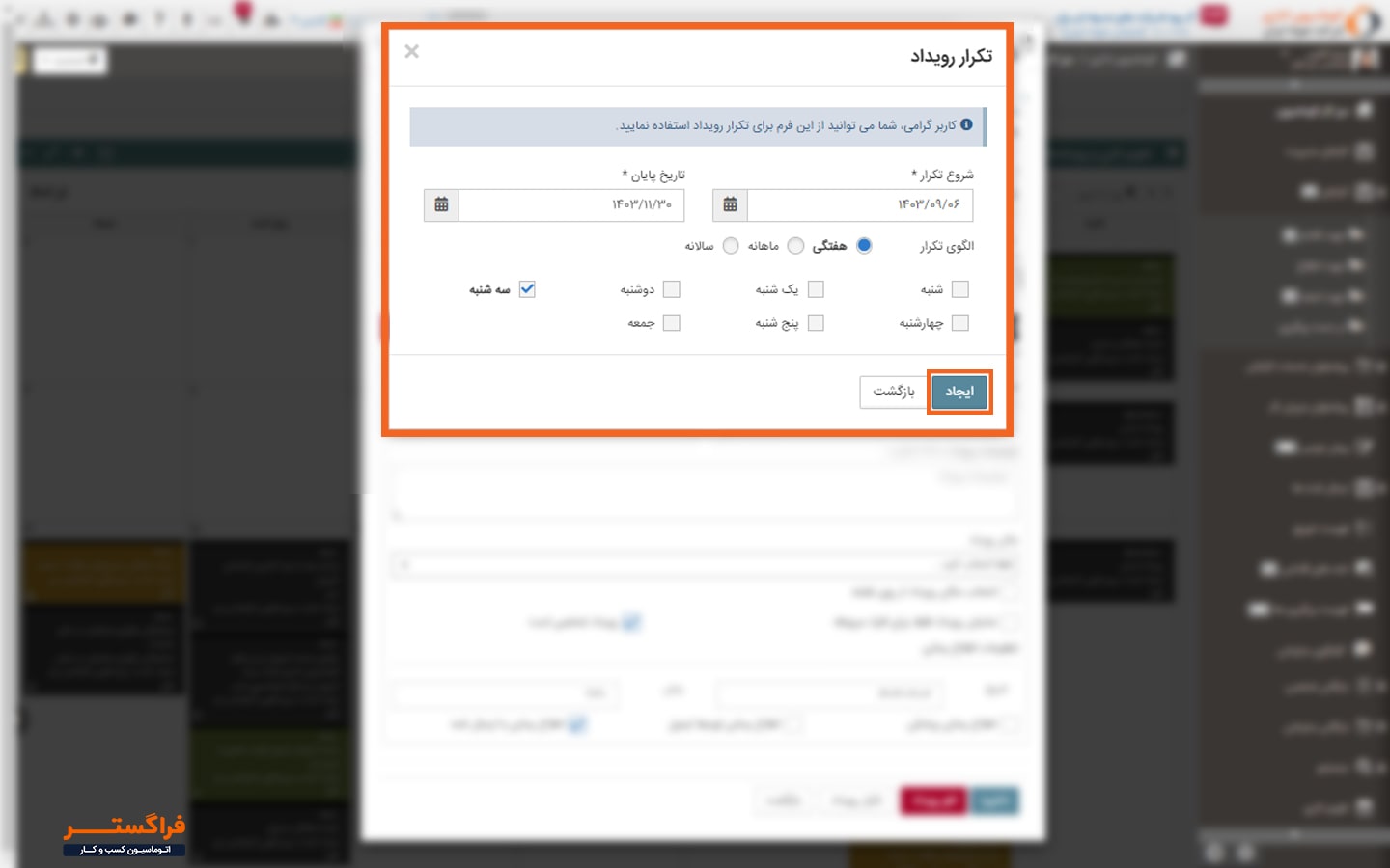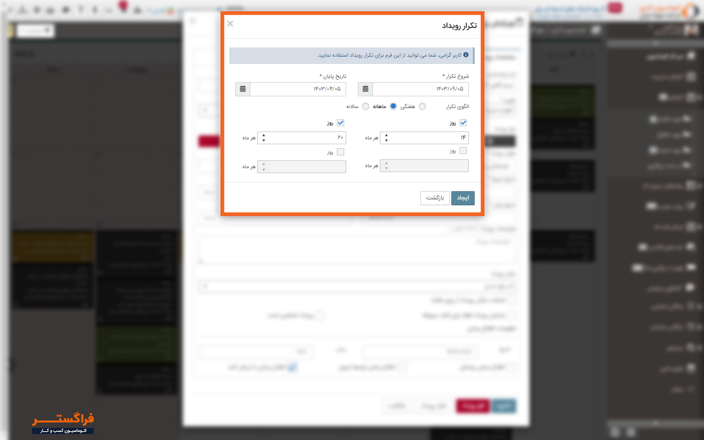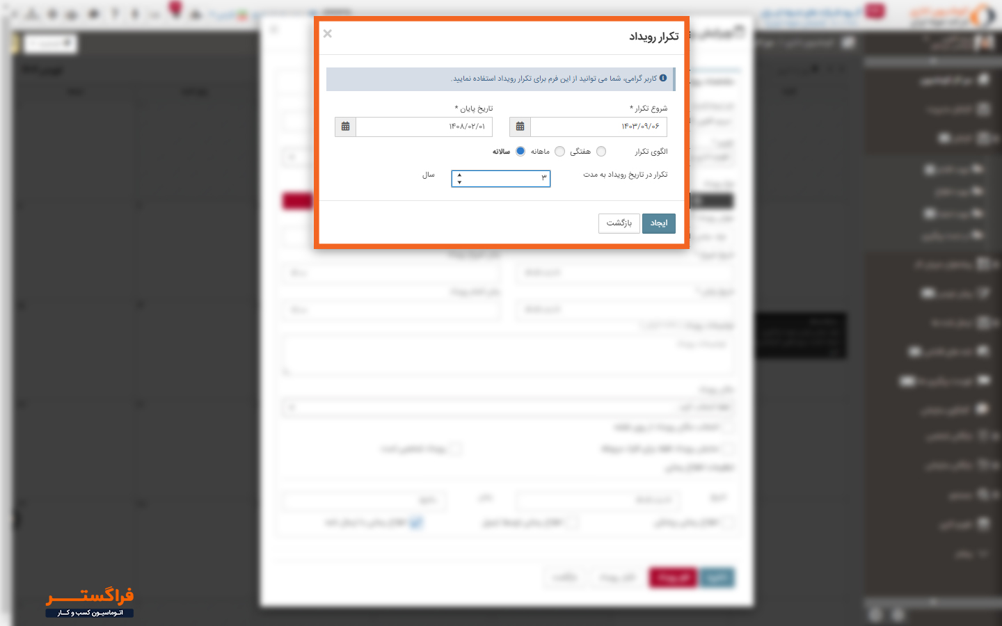 ثبت رویداد تکرار شونده در تقویم سازمانی فراگستر