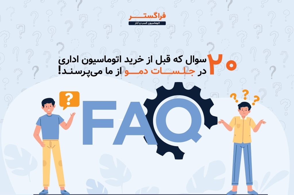 در این مقاله به بررسی 20 سوال متداولی که مشتریان در جلسات دمو از متخصصین و مشاورین ما می‌پرسند، پرداختیم و پاسخ‌ این سوالات را بررسی کردیم؛ هدف از این مقاله افزایش دانش و آگاهی شما در مورد اتوماسیون اداری بوده و امیدواریم که با مطالعه این مقاله، دید بهتری نسبت به جلسات دمو و مشاوره رایگان و سوالاتی که باید بپرسید، به‌دست آورده باشید. لازم به ذکر است که پذیرای سوالات و ابهامات شما در بخش نظرات هستیم.