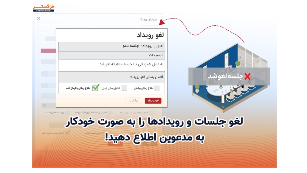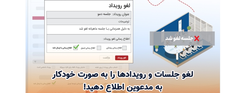 لغو جلسات و رویدادها را به صورت خودکار به مدعوین اطلاع دهید!