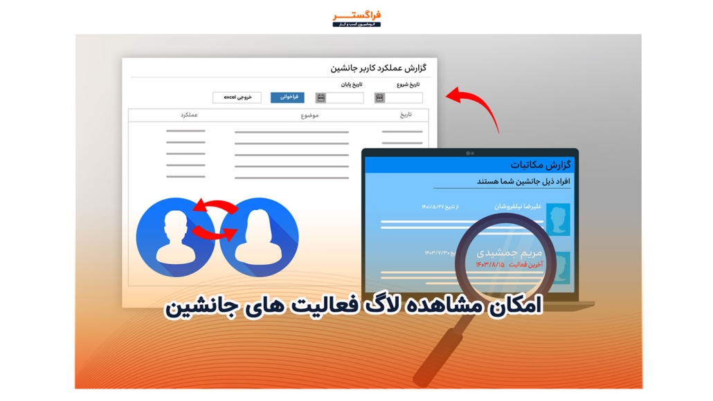 در اتوماسیون کسب و کار فراگستر، قابلیتی فراهم شده تا بهطور جامع و دقیق فعالیتهای کاربر یا کاربران جانشین خود را رصد کنید و به راحتی به فهرست نامههایی که توسط کاربر جانشین مشاهده یا امضا، چاپ، ارجاع و … شده دسترسی داشته باشید.