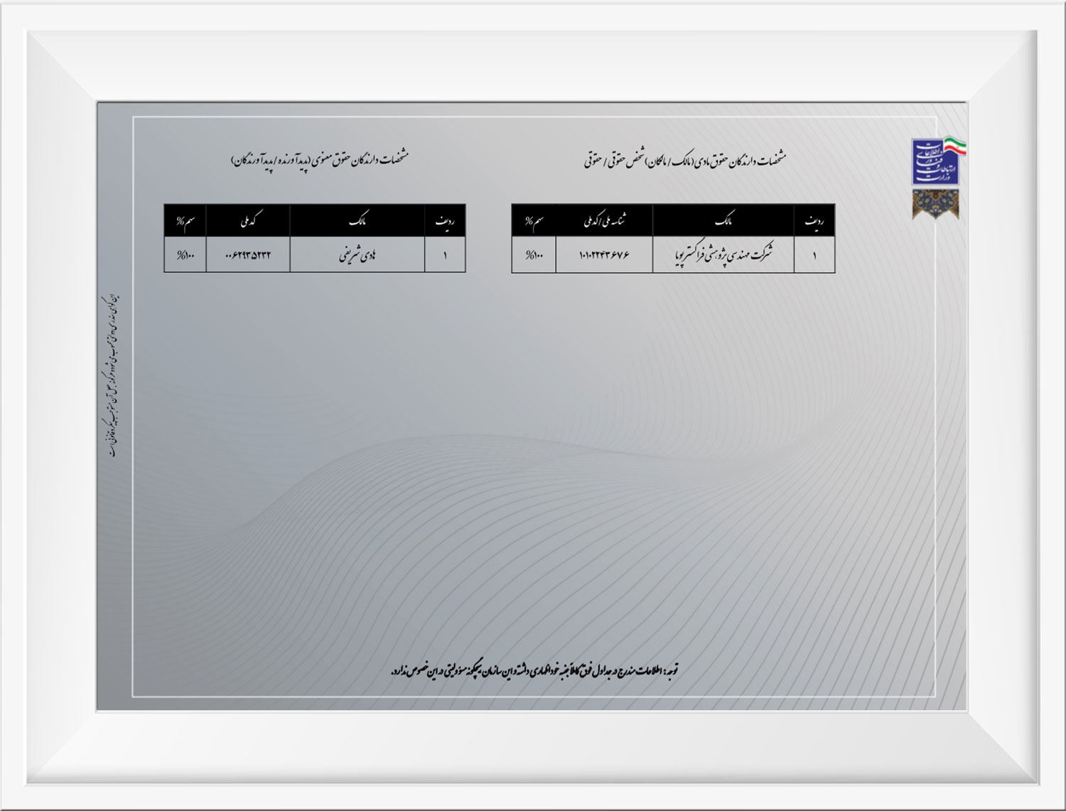 اخذ گواهی سلامت نظام اداری نشانگر آن است که فراگستر: