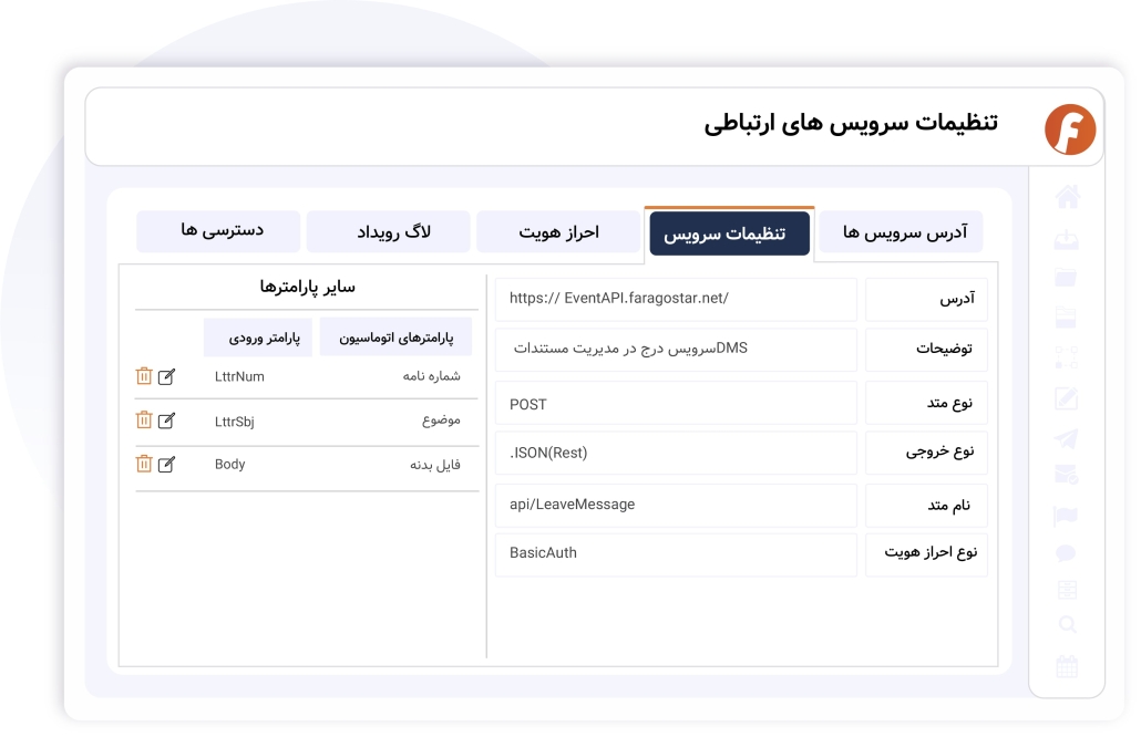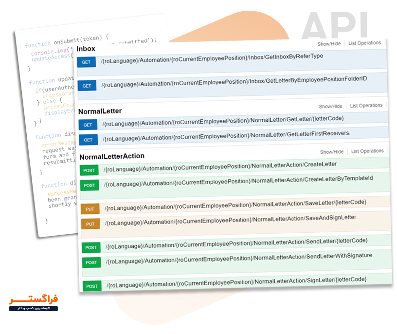 تجارب متعدد فراگستر در این حوزه موجب آماده سازی ابزارها و سرویسهای نرمافزاری تحت عنوان کتابخانه FaraGostar API گردیده که بطور پیش فرض در اتوماسیون کسب و کار فراگستر قرار گرفته و به آسانی قابل بهره برداری میباشند.