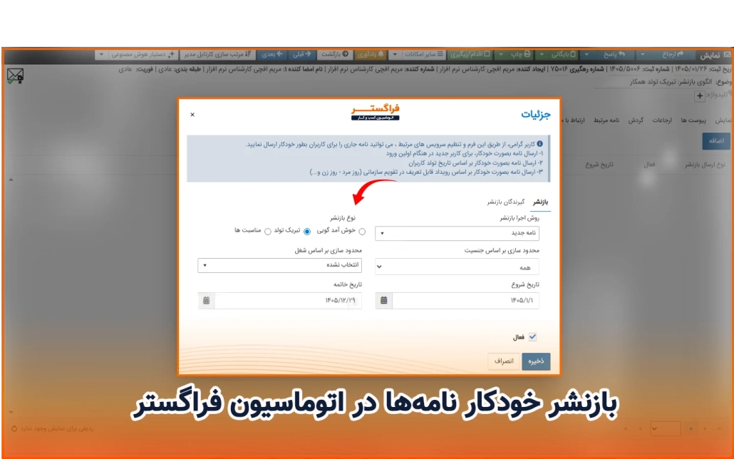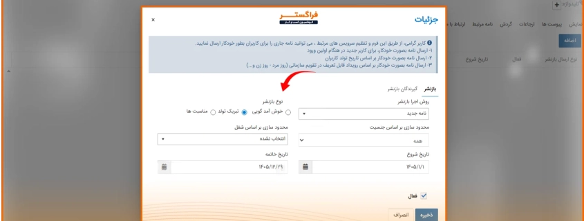 انواع بازنشر و سناریوهای ارسال نامه بصورت خودکار در نرم افزار اتوماسیون اداری فراگستر