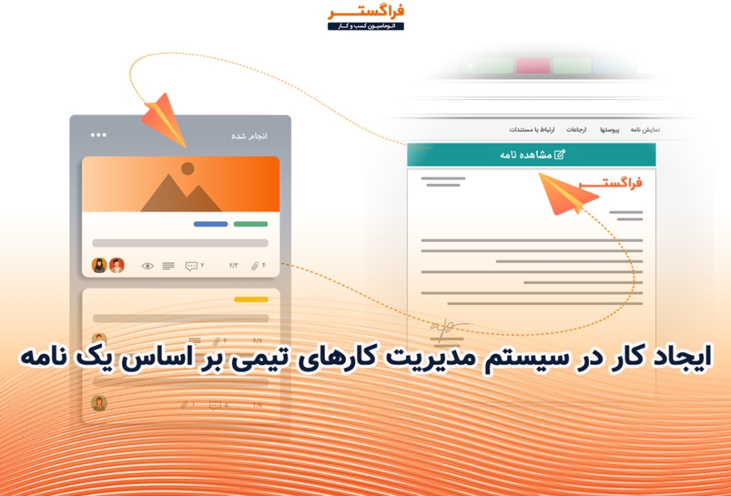 خیلی وقتها هنگامی که نامهای در اتوماسیون ارسال میشود، نیاز است که بر اساس آن وظایفی برای افراد تیم تعریف شده و اقداماتی صورت گیرد. با این قابلیت اتوماسیون کسب و کار فراگستر، شما میتوانید به راحتی از نامهها و درخواستها، کارهای جدید ایجاد و آنها را به اعضای تیم اختصاص دهید. این سیستم همچنین امکان پیگیری و نظارت بر پیشرفت کارها را فراهم میکند که این باعث بهبود هماهنگی و افزایش بهرهوری تیم خواهد شد.